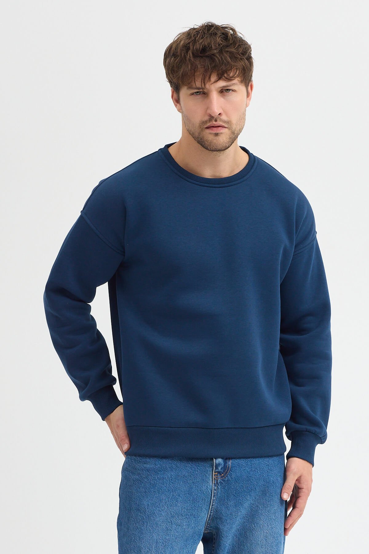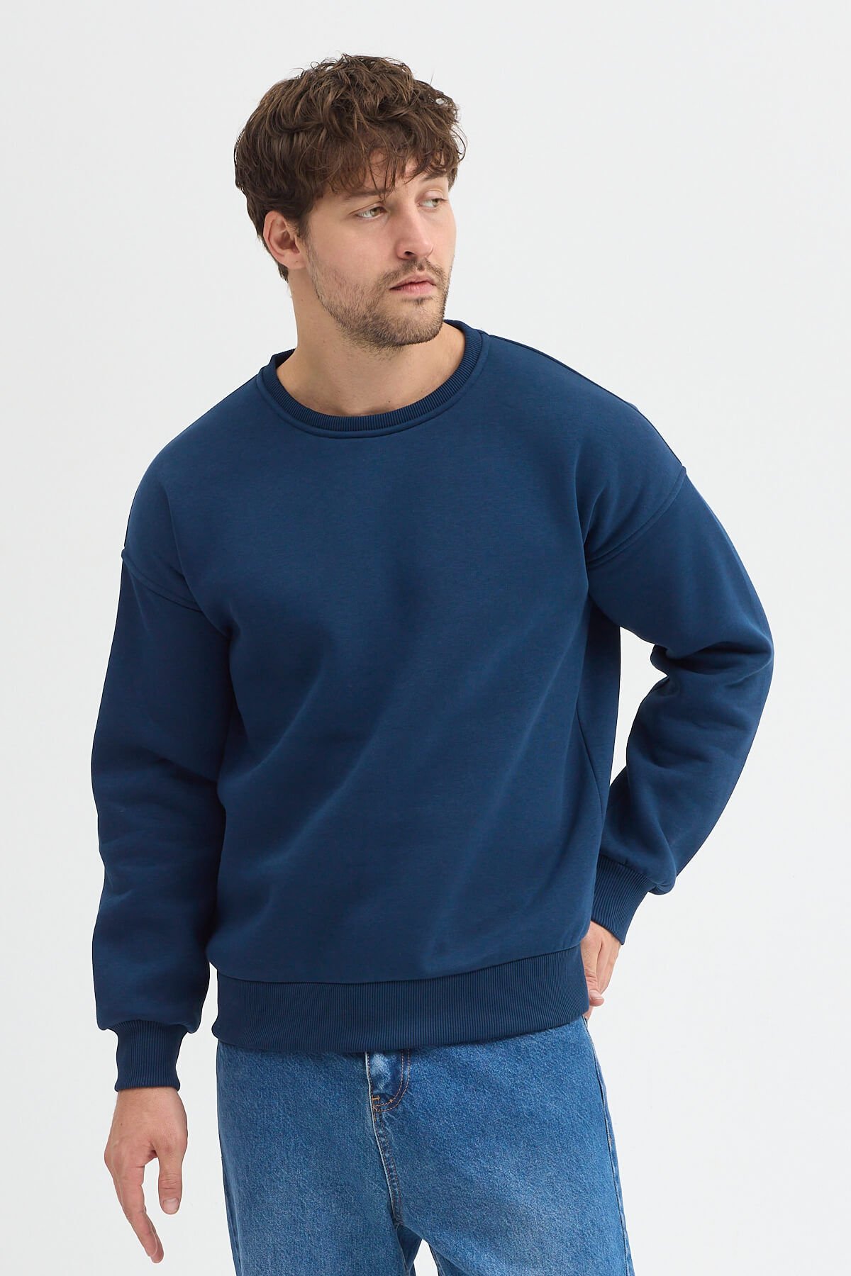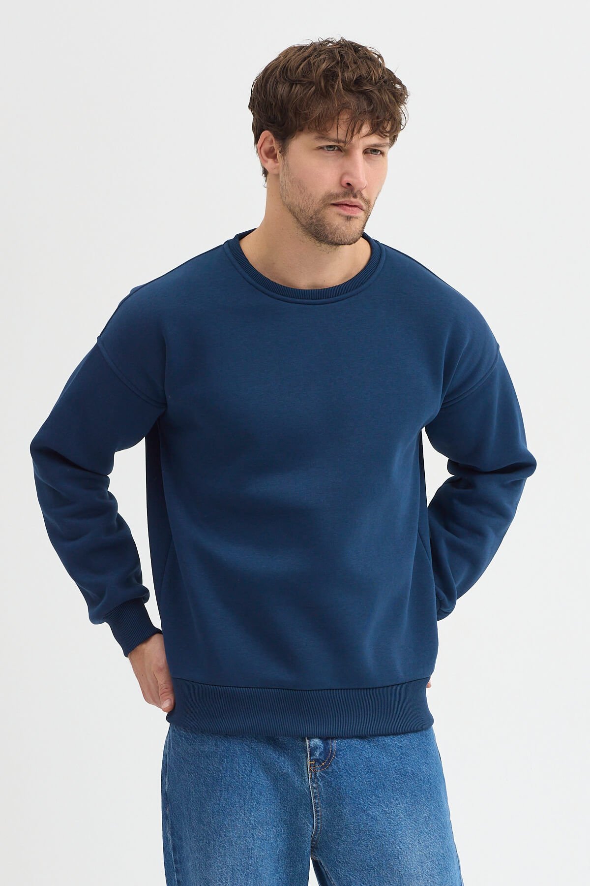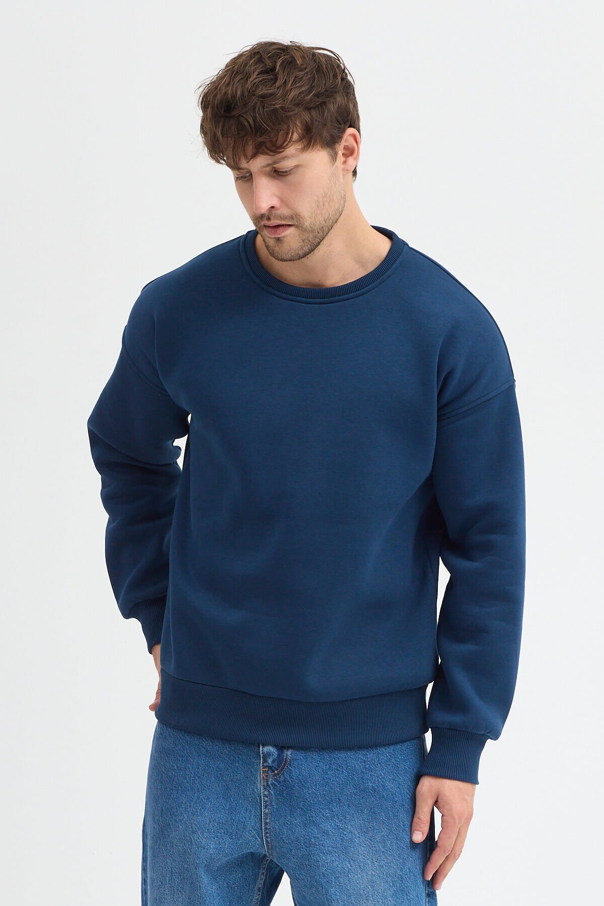 Gerçek oversize kesimi ve 3 iplik, kalın şardonlu kumaşıyla İndigo Bisiklet Yaka Oversize Sweatshirt, konfor ve dayanıklılığı bir arada sunar. Basic tasarımıyla her kombine kolayca uyum sağlayan bu sweatshirt, şıklığı ve rahatlığı ön planda tutanlar için ideal seçimdir.
