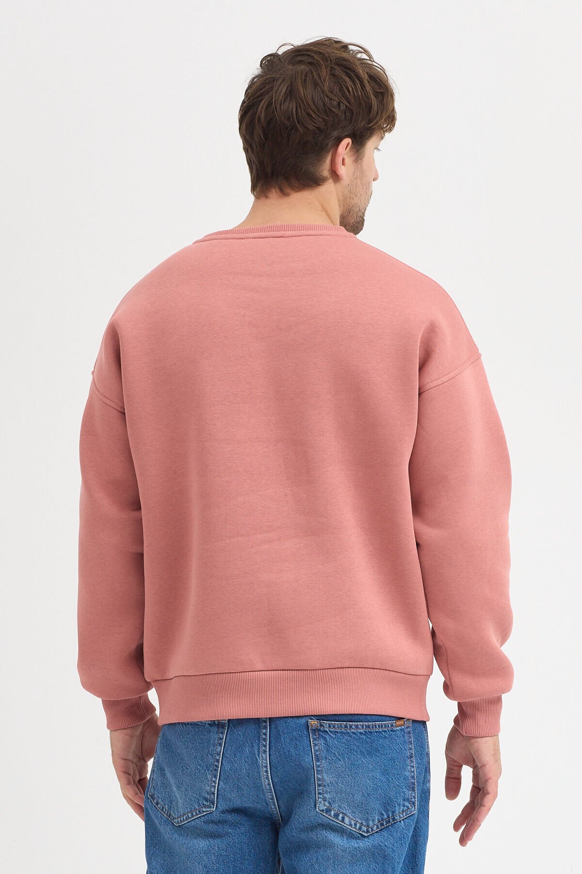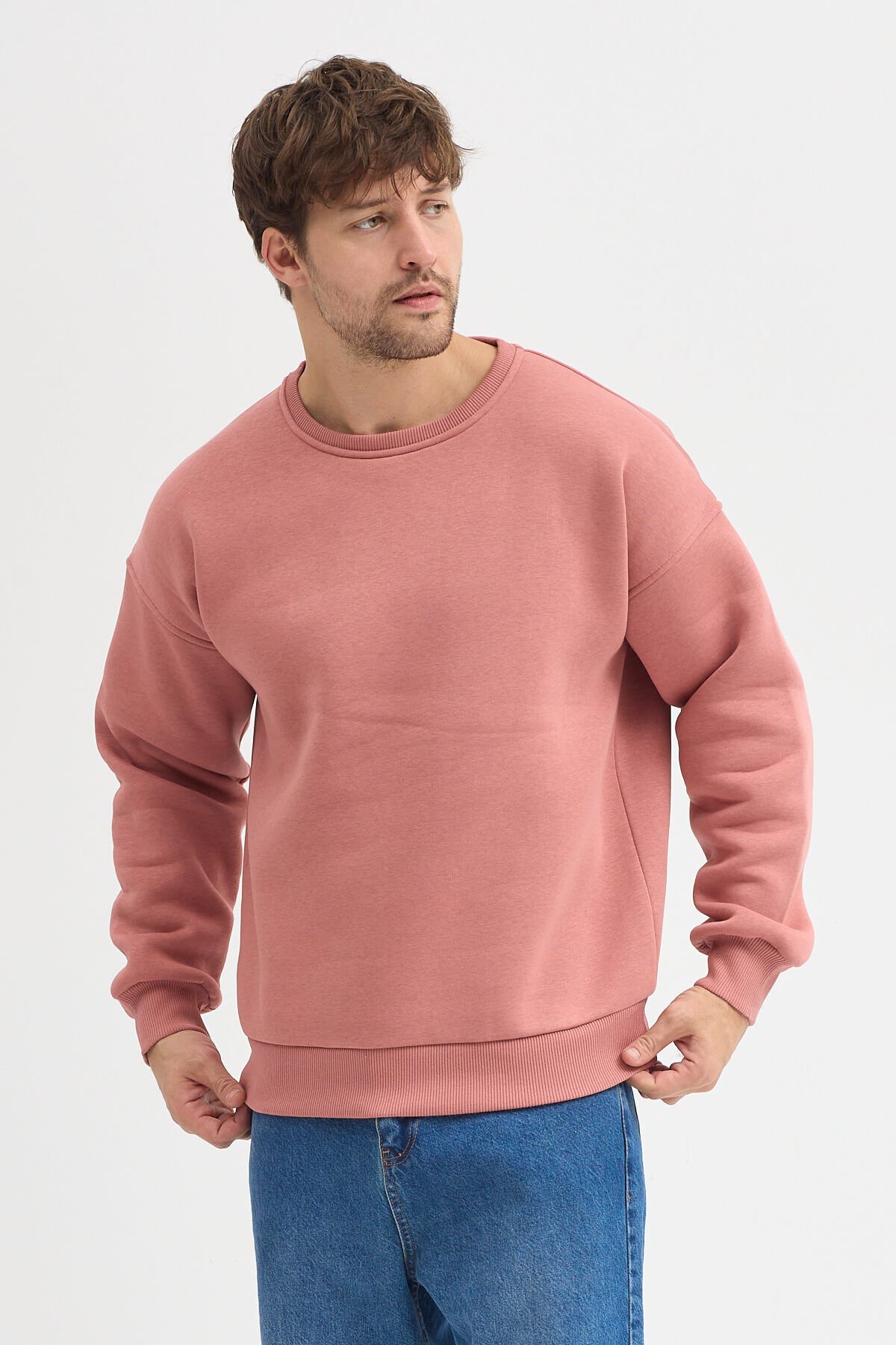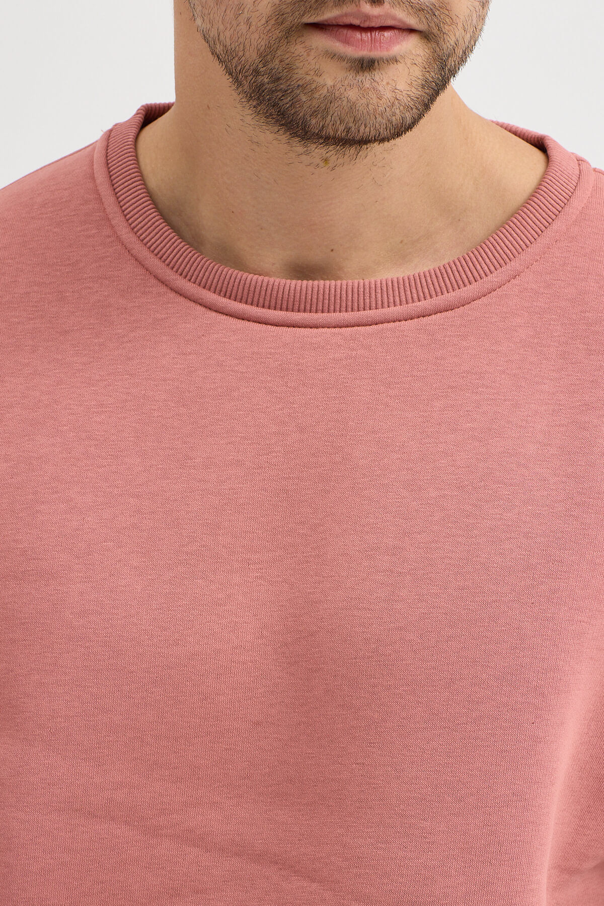 Mercan Bisiklet Yaka Oversize Şardonlu Basic Erkek Sweatshirt