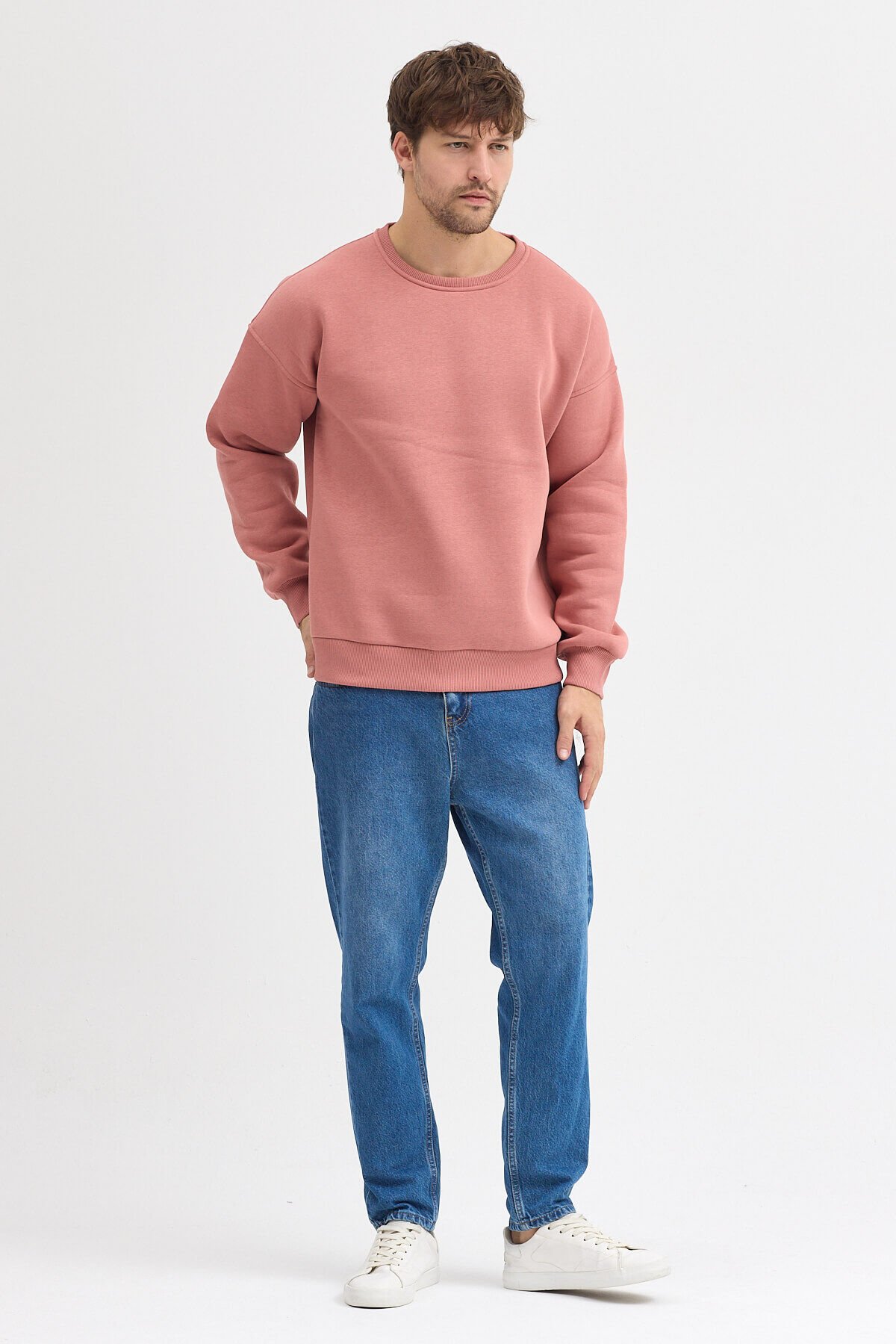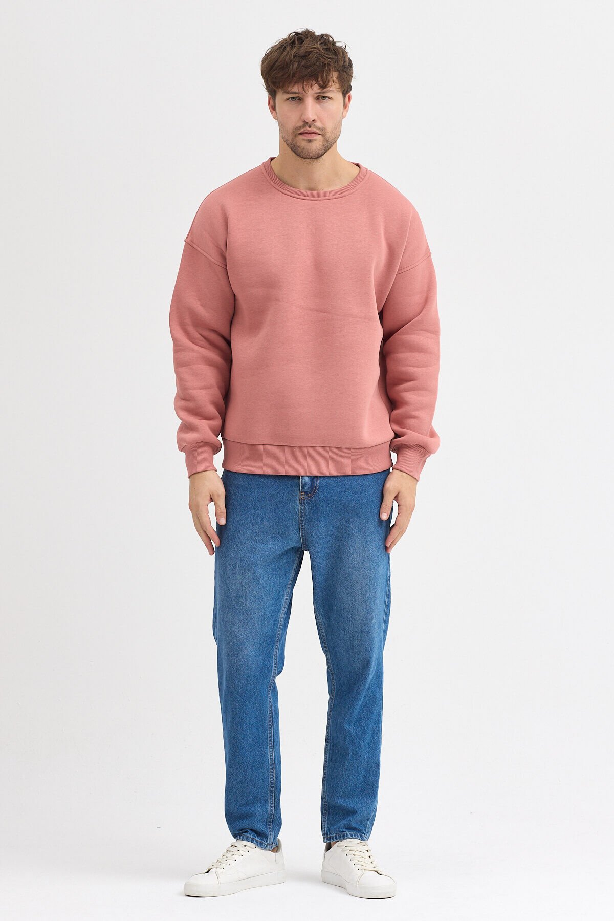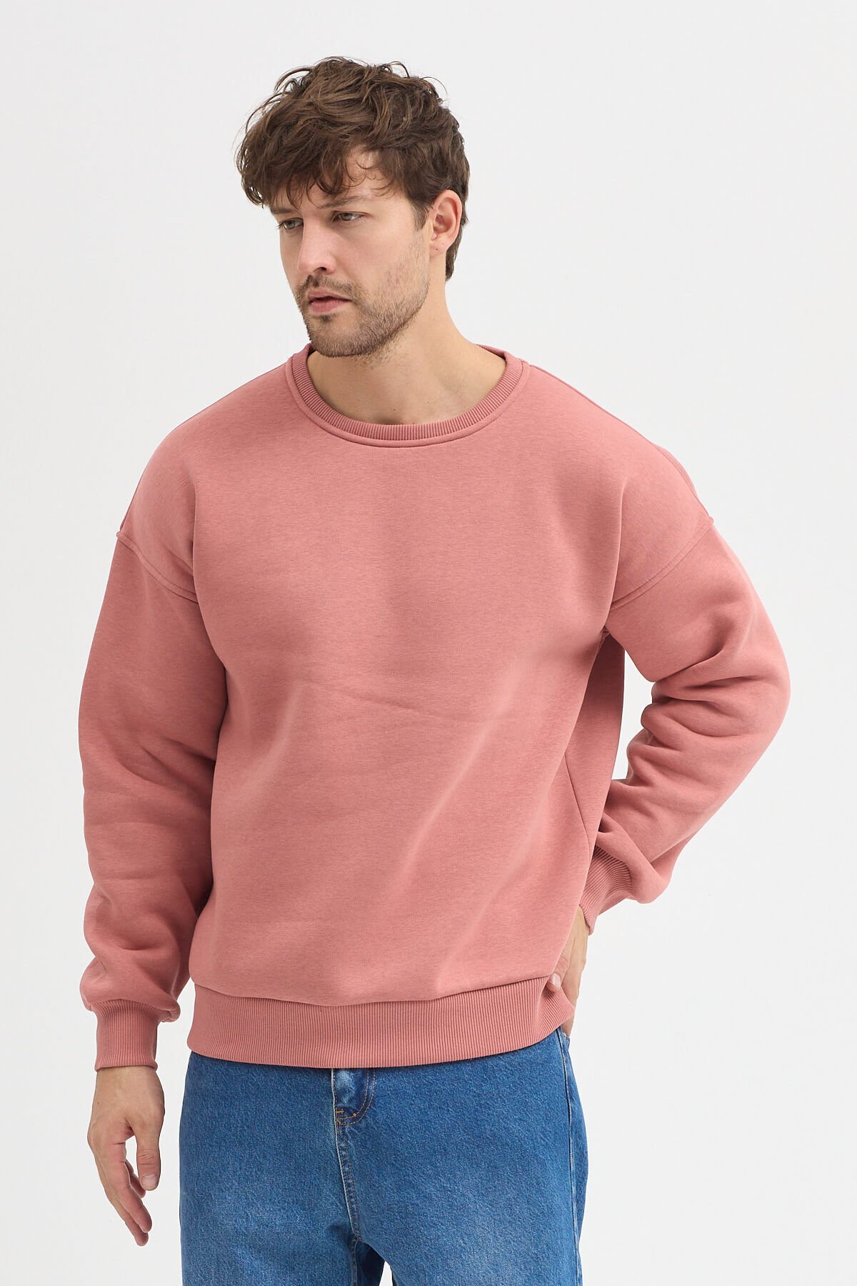 Mercan Bisiklet Yaka Oversize Şardonlu Basic Erkek Sweatshirt