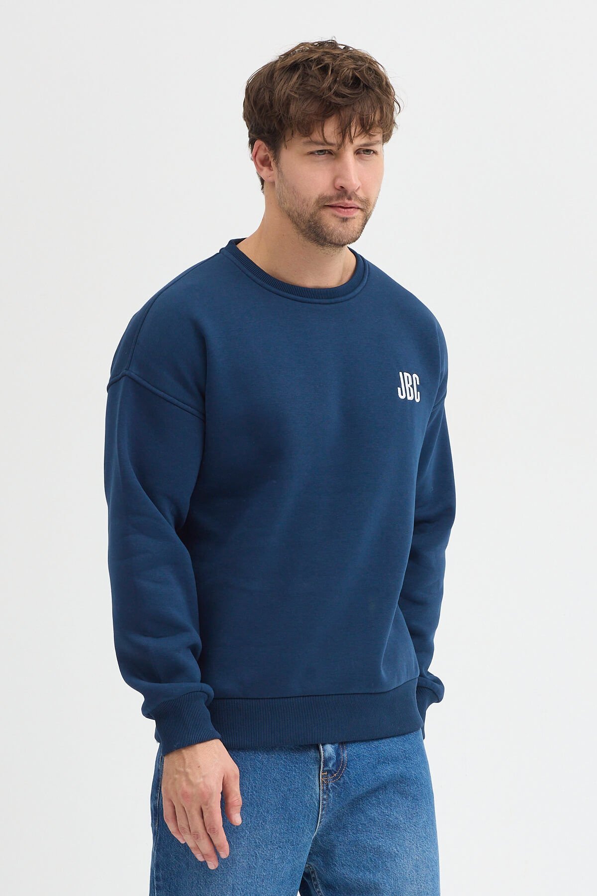 Nakışlı İndigo Bisiklet Yaka Oversize Şardonlu Basic Erkek Sweatshirt jbc-swt-mercan(Kopya-28B)(Kopya-R8T)(Kopya-P2C)(Kopya-CT2)(Kopya-5NS)(Kopya-RVP)