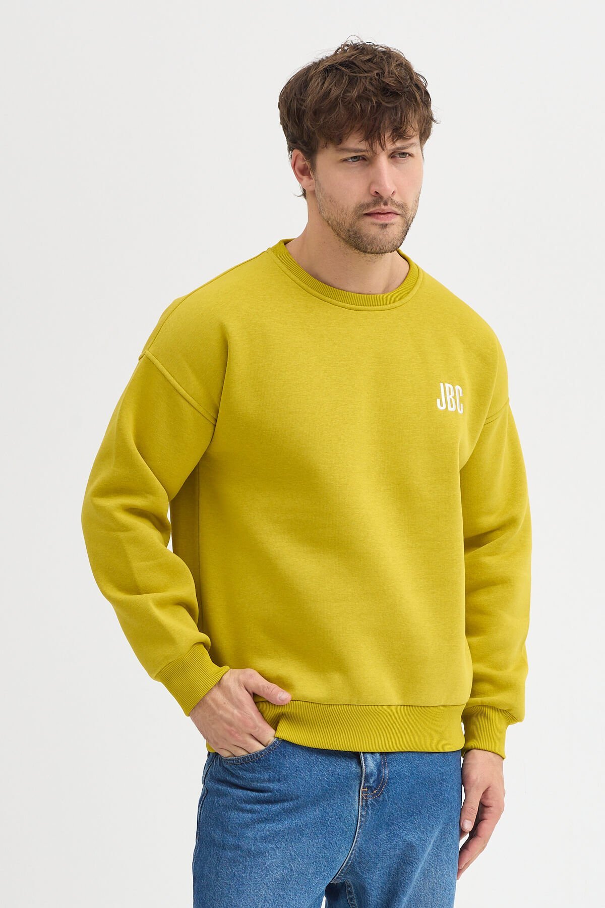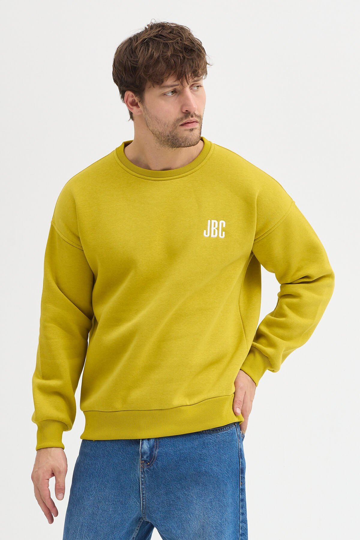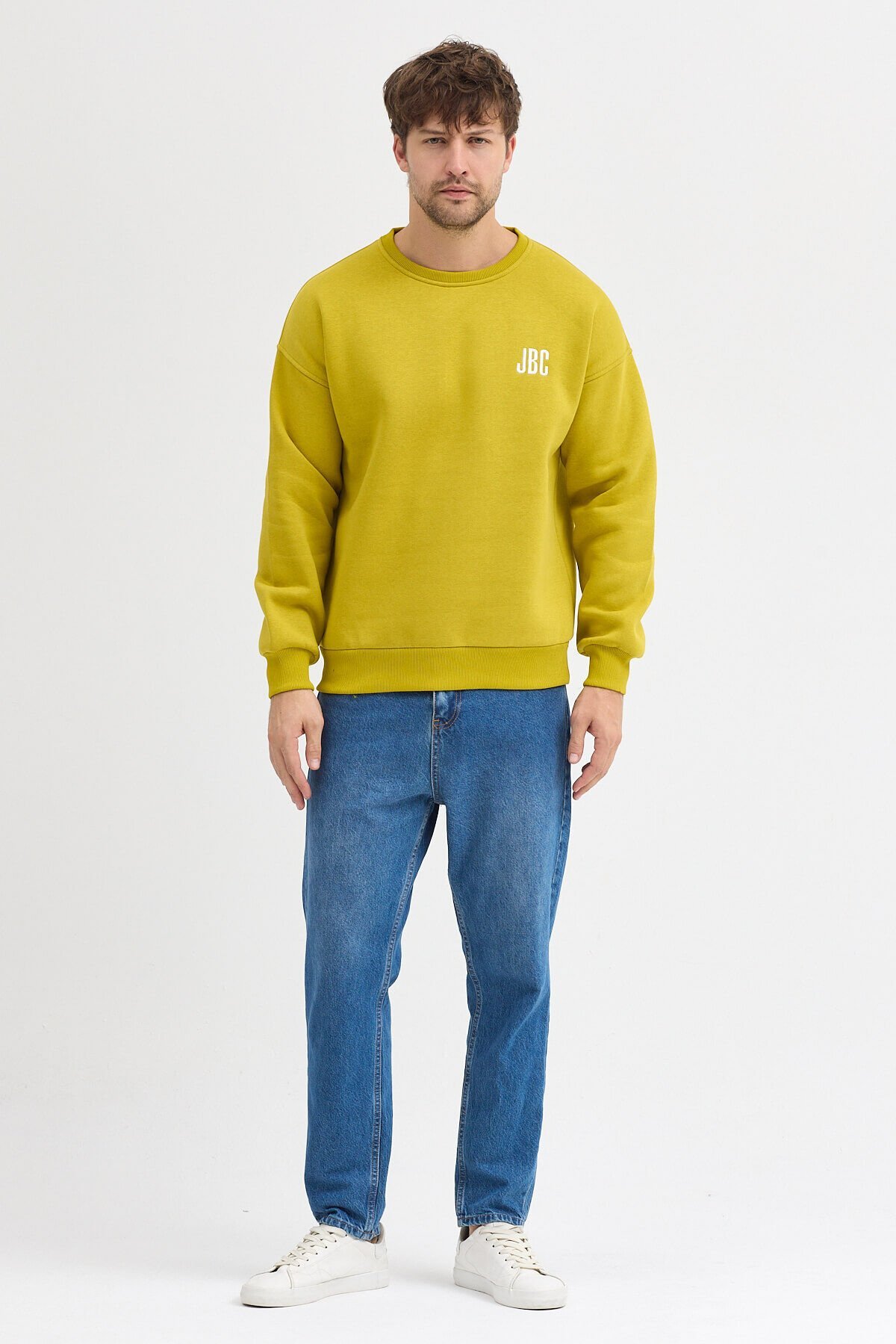 Nakışlı Sarı Bisiklet Yaka Oversize Şardonlu Basic Erkek Sweatshirt jbc-swt-mercan(Kopya-28B)(Kopya-R8T)(Kopya-P2C)(Kopya-CT2)