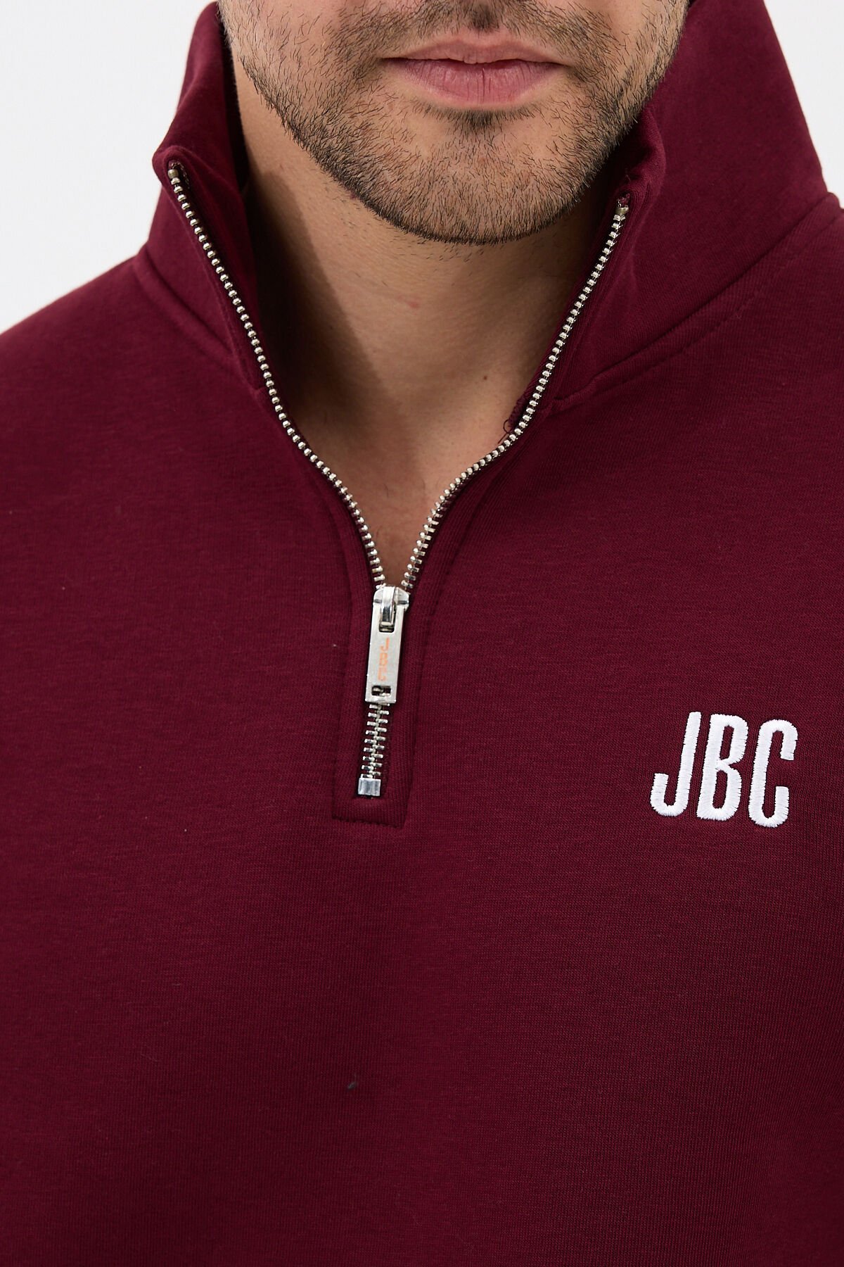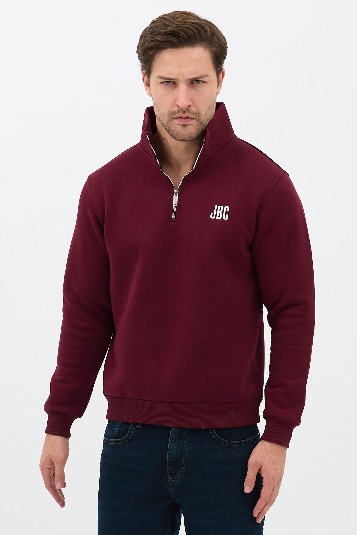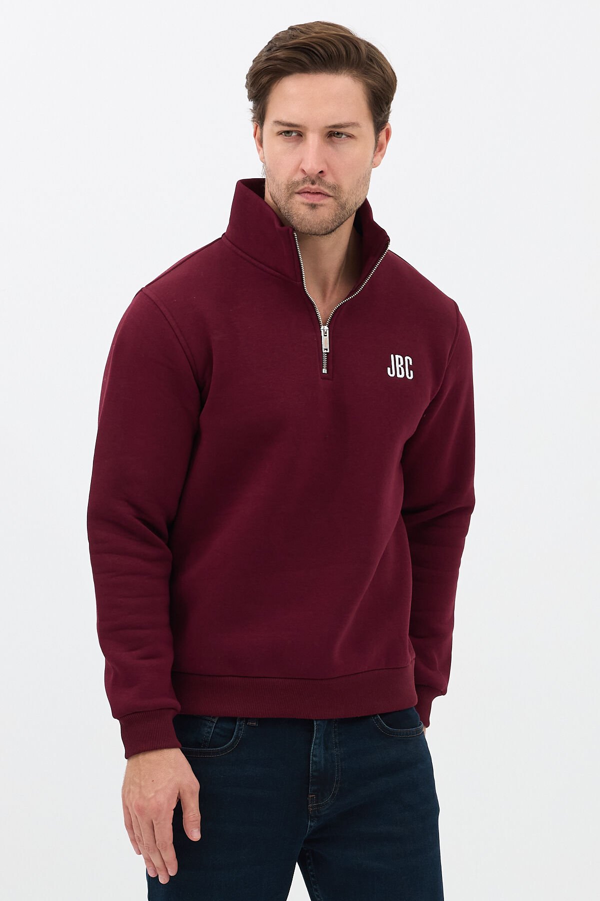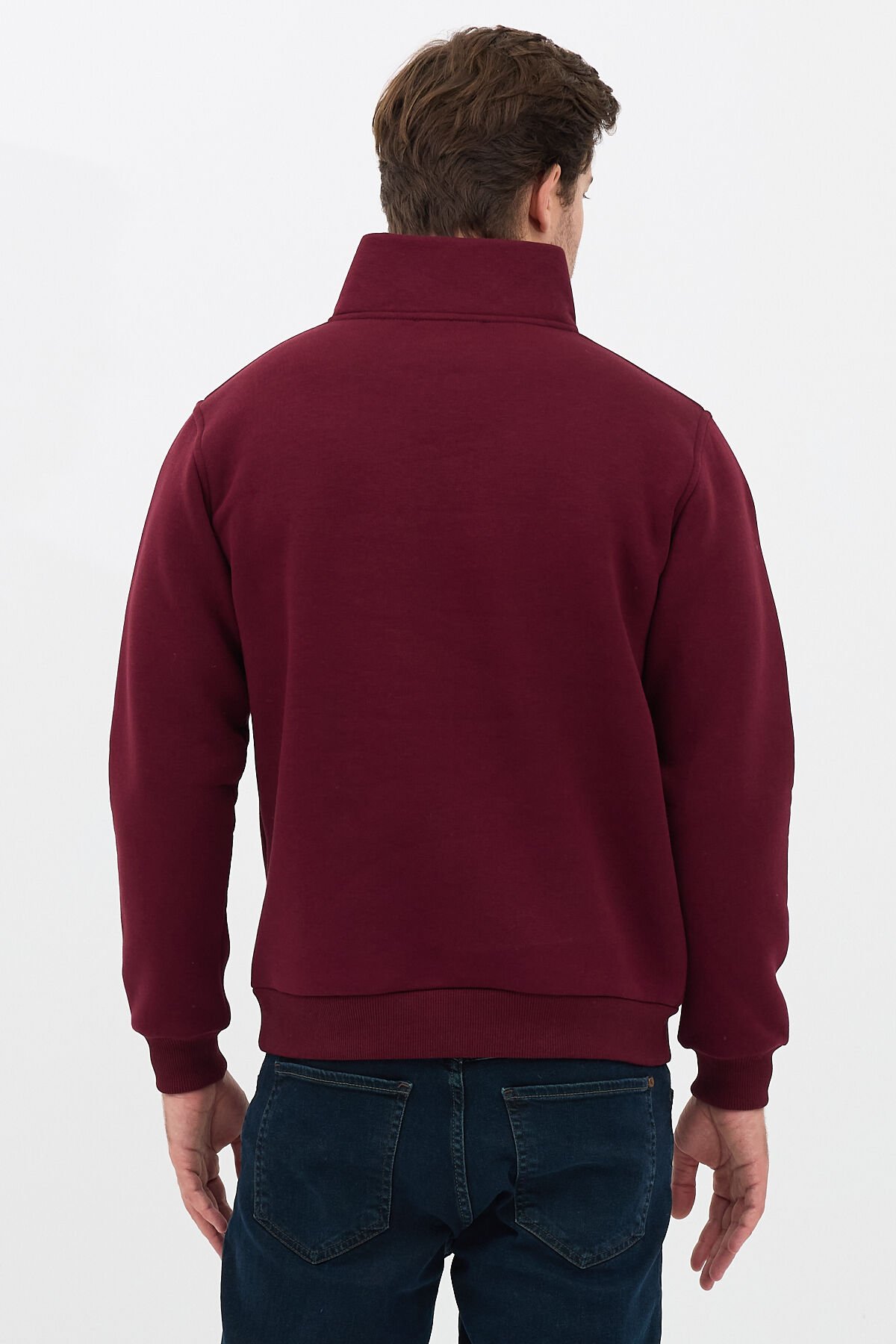 Relax Fit Rahat Kesim Nakışlı Yarım Fermuarlı Vişne Dik Yaka Sweatshirt
