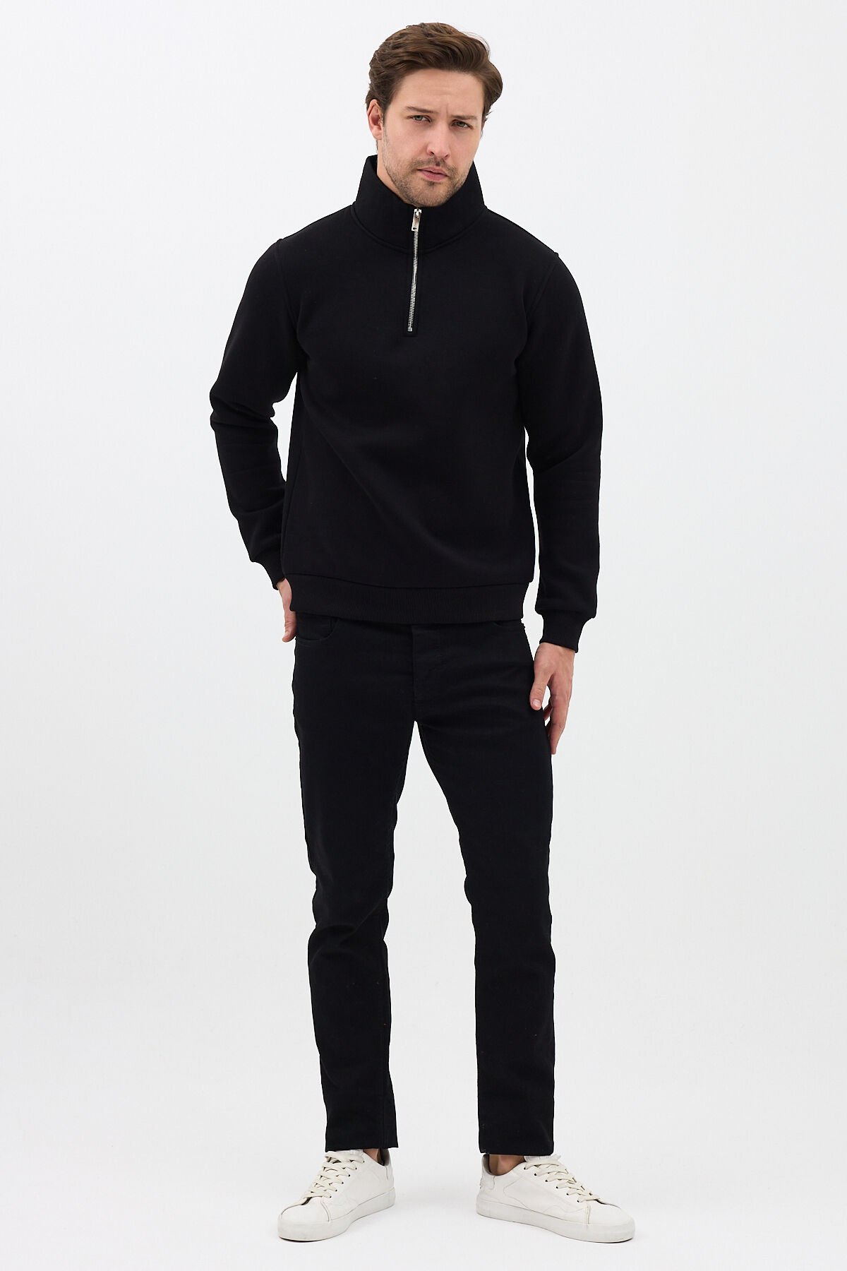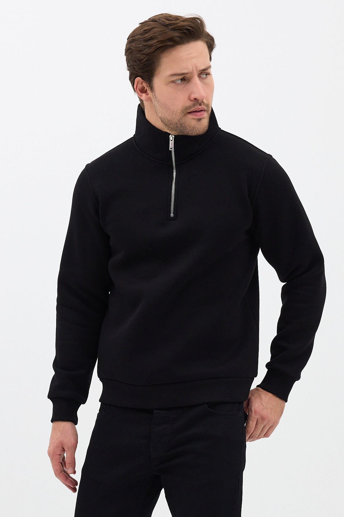 Relax Fit Rahat Kesim Pamuklu Içi Polarlı Yarım Fermuarlı Siyah Dik Yaka Sweatshirt zipper-bsc(Kopya-Q2F)(Kopya-EWF)(Kopya-LBN)(Kopya-6QX) Relax Fit Rahat Kesim Pamuklu Içi Polarlı Yarım Fermuarlı Siyah Dik Yaka Sweatshirt
